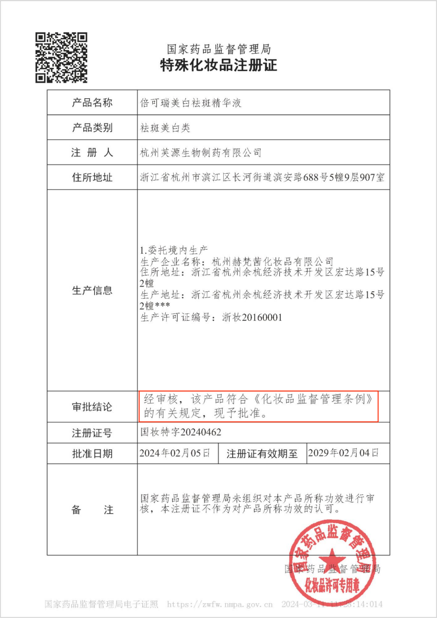 根據(jù)2021年我國特殊化妝品新規(guī),美妝類特殊化妝品須通過監(jiān)管部門的多項檢測、審核要求,進行人體親測,且產品達到安全和功效要求后方可獲批,從申請到拿證,時間長達18個月。持新證上崗的倍可瑞產品,標志著其功效、安全達到了我國人體親測要求,消費者可以毫無顧慮地購買使用。