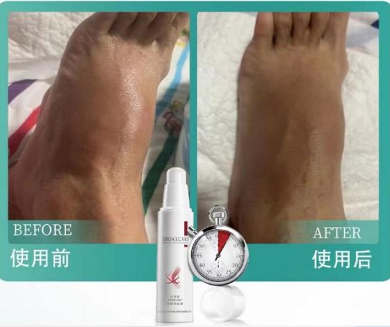 使用后狀態(tài):涂抹使用舒緩保健液18小時(shí)后,左腳的腫脹消退了許多,劇烈的疼痛感消失。