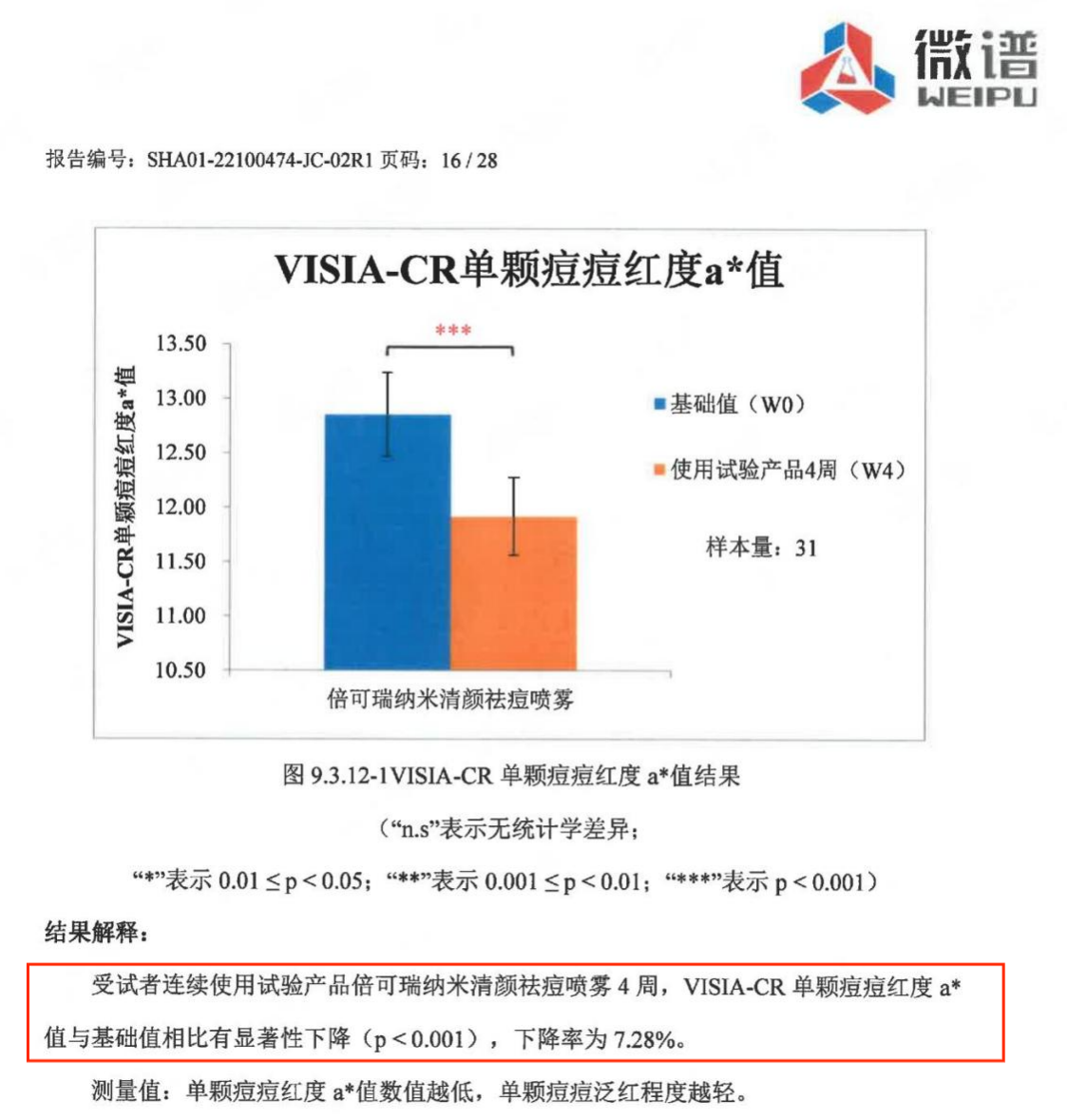 納米清顏祛痘噴霧功效檢測報告