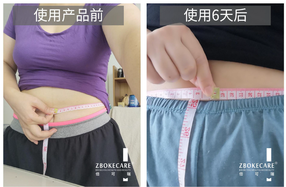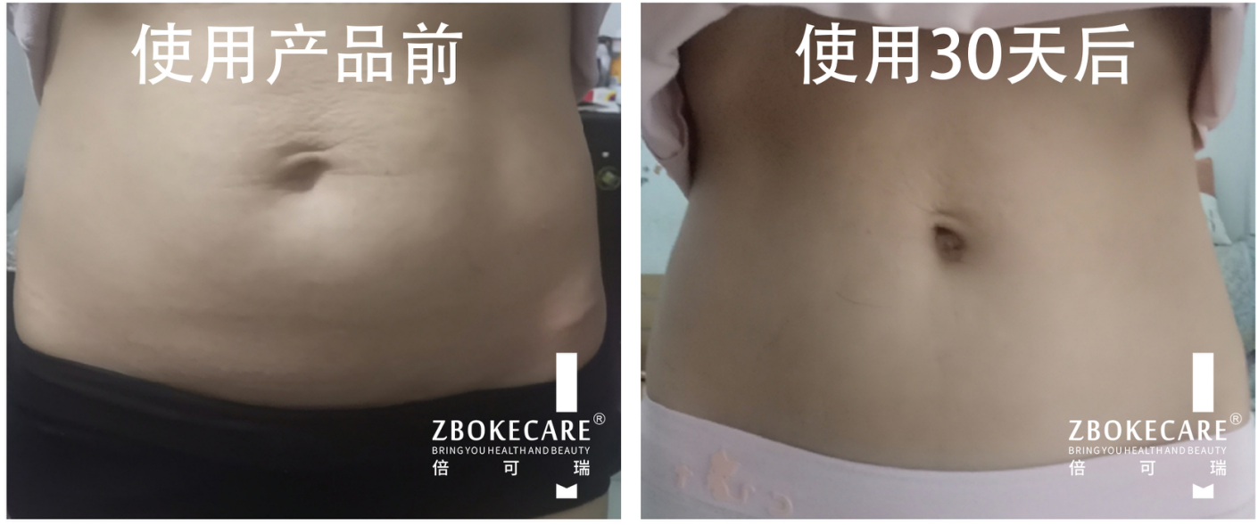 使用后:使用產(chǎn)品30天后,腹部收縮、收緊,體重減少,皮膚變嫩很多,腰圍測量77公分,塑形9公分。