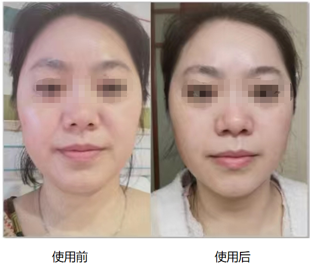 使用后狀態(tài):15天使用了產(chǎn)品2瓶,法令紋淡化,下頜線清晰、皮膚變緊致,更顯年輕。