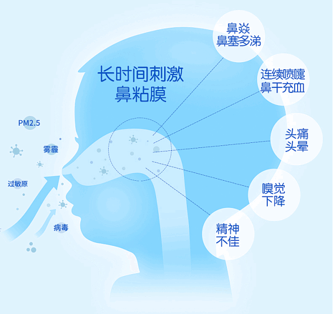 產(chǎn)品液體溫和不沖鼻,細(xì)膩的霧化狀,可以形成一層保護(hù)膜,有效阻隔病毒真菌侵害,減少鼻炎反復(fù)發(fā)作。